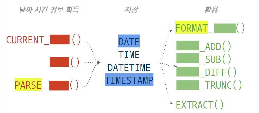 날짜 시간 관련 함수를 다룰 때는 아래 두 가지 개념의 이해가 도움이 됩니다.